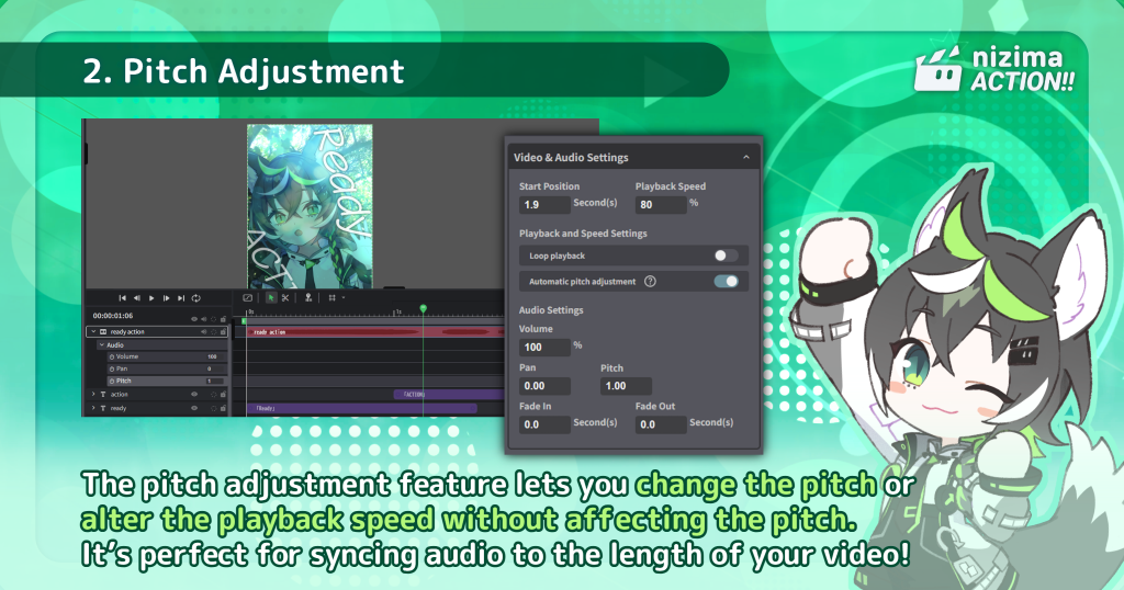 This is especially useful when you want to speed up BGM or match recorded vocals to the video length without changing their pitch
