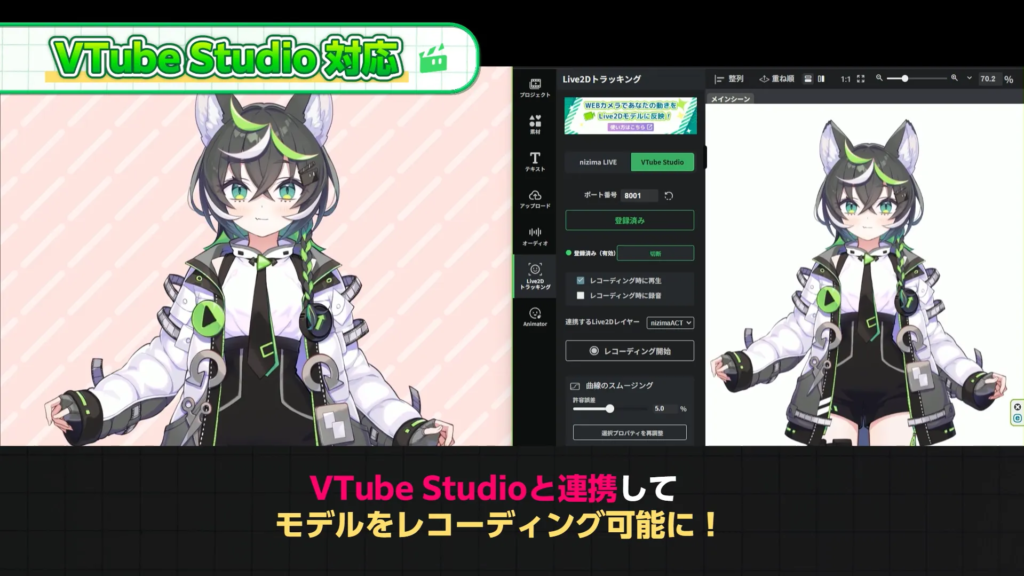 VTube Studio上の動きを、nizima ACTION!!上のLive2Dモデルの動きとしてレコーディングすることが可能になります🙋